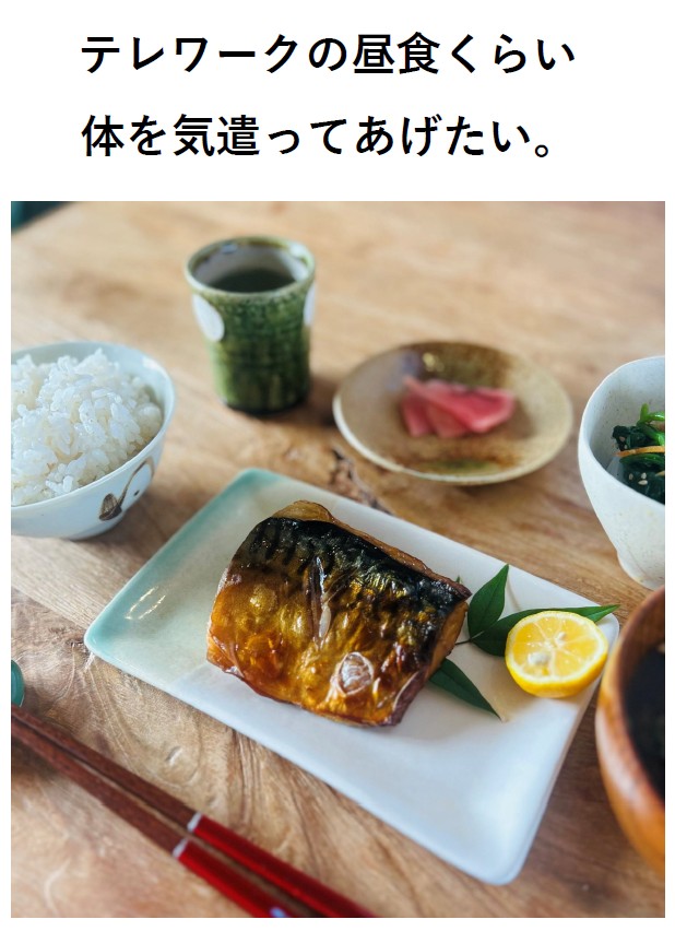 オフィス街、お昼休みの昼食はどうしても偏りがちです。ラーメン、揚げ物、コンビニ弁当等。時間と場所が限られるので、仕方のない面もあります。その分、テレワークの昼食くらいは、体を気遣った優しい和食はいかがでしょうか。手間のかからない冷凍焼き干物は、そうった場面にも最適です。